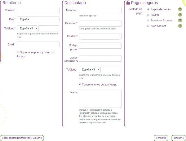 Preste atención en facilitarnos los datos correctos del destinatario y un número de contacto,informaciones importantes para que la entrega se lleve a cabo sin ningún problema.